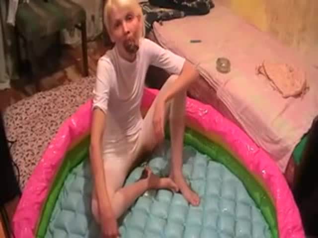 Blonde Russian slut covered her naked body with fresh shit. She's getting fucked hard in missionary position.