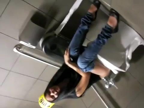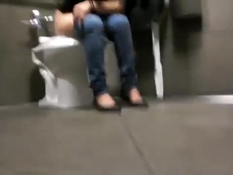 hot girl takes a piss in a public restroom