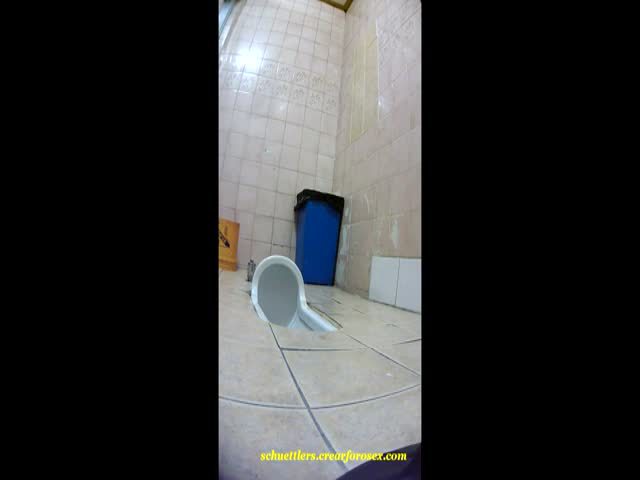 Hot babe was caught peeing in a public bathroom. She didn't know that a hidden camera was installed there.