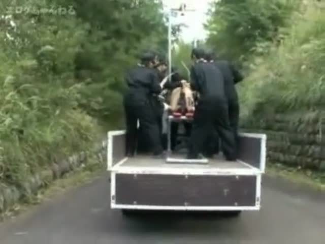 Brown haired Japanese teen tied on a tree so she can't move. She was forced to poop there and she had diarheea.