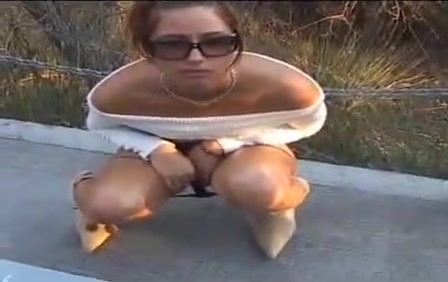 Blonde slut wearing sunglases while she's pooping in a public place.