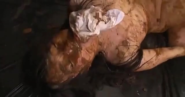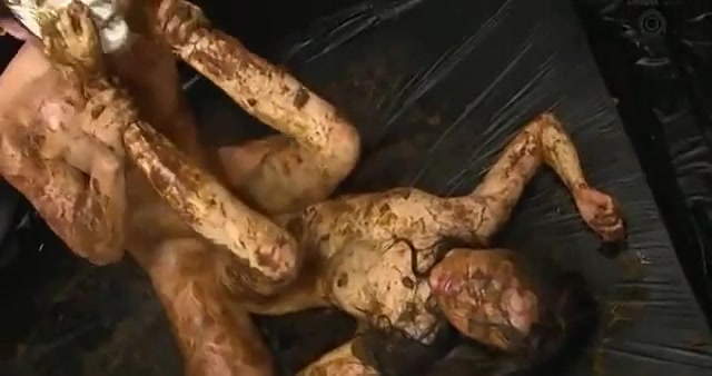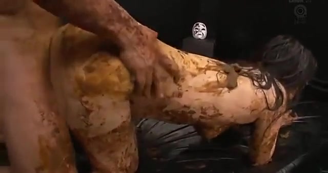 Asian beauty smears fresh shit on her entire body while her boyfriend is fucking her hard in missionary position.