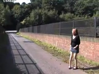 Brunette hottie decides to pee in a public place. She wiped her wet pussy before leaving.