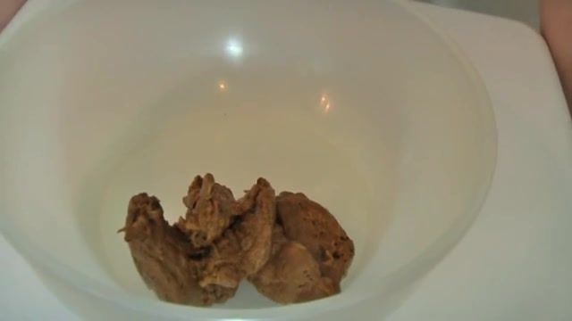 Sexy blonde babe pooping a big pile of creamy shit in a glass after she just finished peeing.