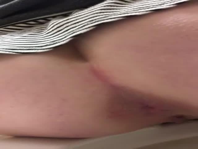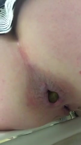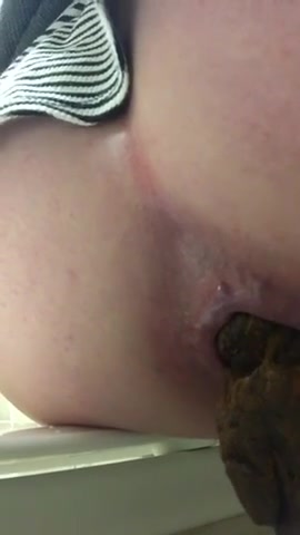 Wife teasing with her big ass while she's pooping a big turd in close up.