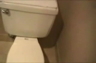 Amateur hottie sits half naked on a toilet while peeing with pressure in it.