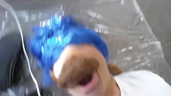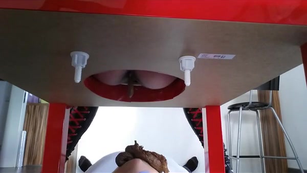 Hot mistress sits half naked on a homemade toilet while she's pooping on her slaves face.