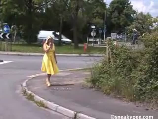 Busty blonde milf decided to pee in a public place because she's a addicted to this.