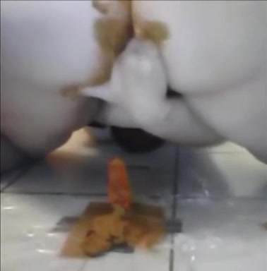Fat woman riding a red dildo while shitting on top of it. She smears poop on her entire ass and pussy.