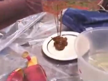 Redhead wife surprised her husband with a shitty cake. She dropped a big pile of shit on a white plate and called it a scat cake.