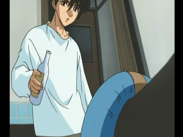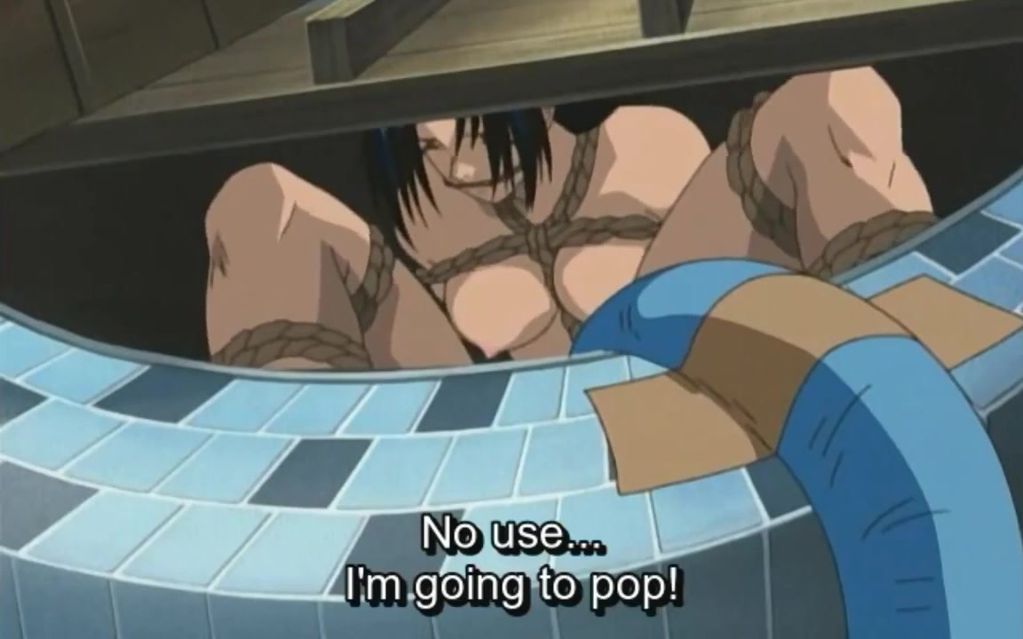 Purple haired hentai chick gets enema treatment from her kinky boyfriend.