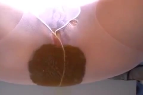 Blonde babe filled her white pantyhose with liquid shit. She smears that fresh shit on her ass and legs.