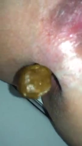 Shaved wife shitting in close up