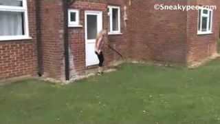 Curly blonde milf peeing outdoor
