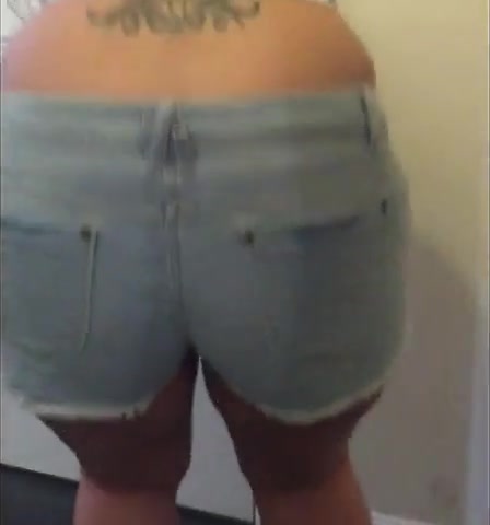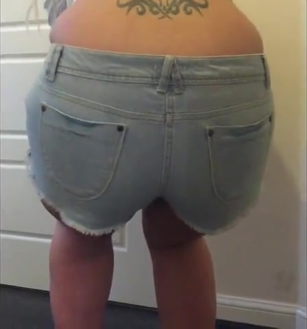 Blonde teen shits in her blue shorts by mistake. She tried to reach a bathroom in time but she failed.