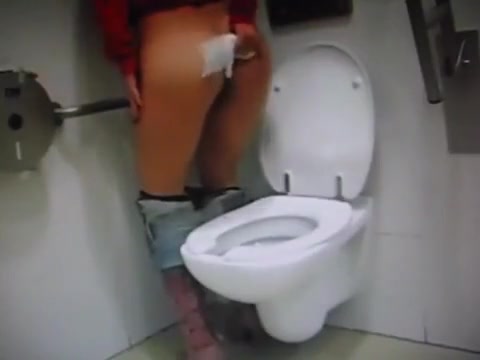 Young girl pulled black panties aside so she can easily poop over toilet. She wiped her ass and left like nothing happened.