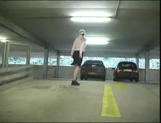 Blonde milf ran fast to pee in underground parking lot. She pulled her panties aside.