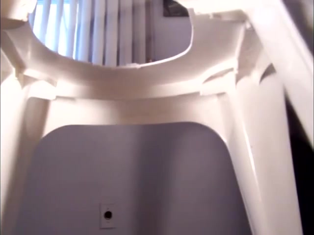 She sits naked on a white homemade toilet while pooping a giant load in hte middle of bedroom floor.
