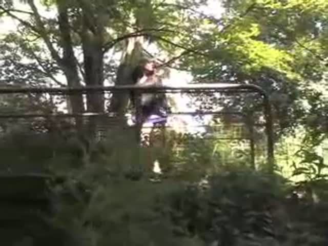 Brown haired girl caught peeing outdoor in a park. She wet her panties by mistake.