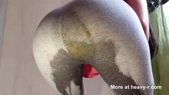 Hot Romanian model did a real mess in her grey leggings. She covered her round ass with fresh crap.