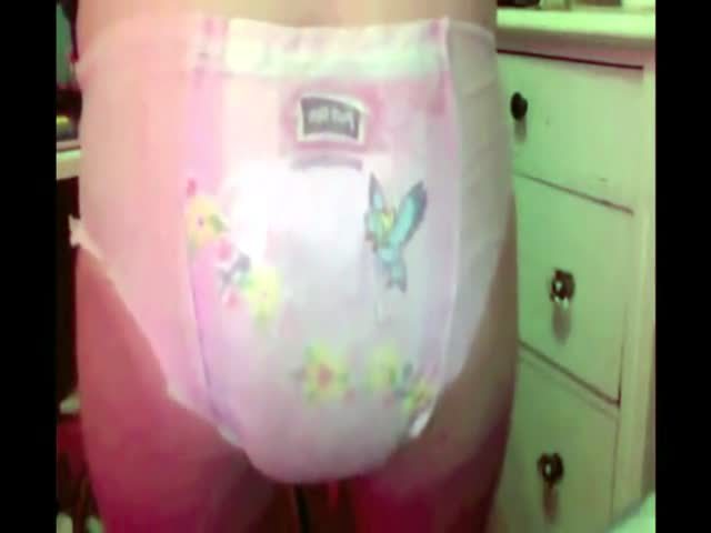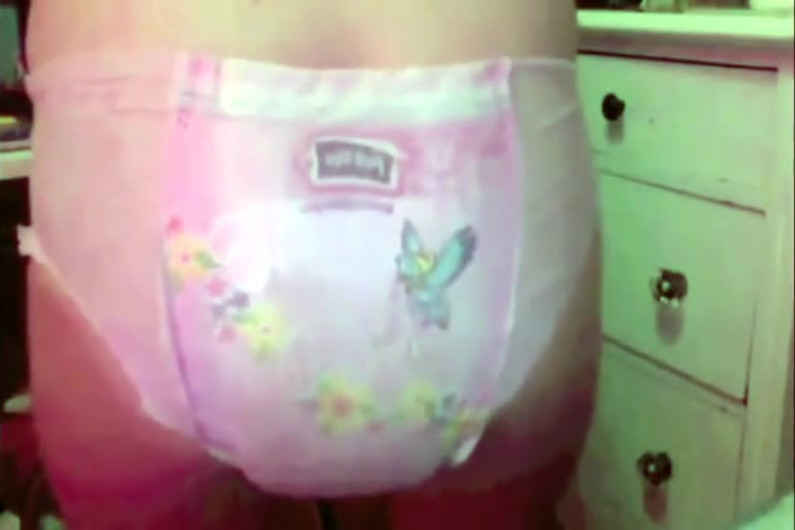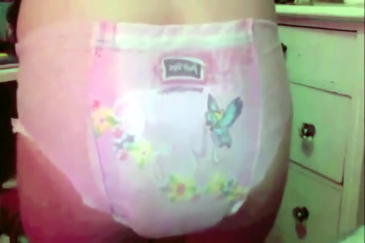 Young girl filled her pink diapers with fresh shit. She wanted to smear that crap on her entire ass.