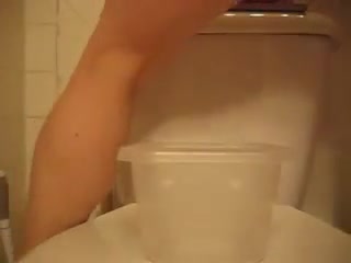 College girl sits on her knees while she's pooping a big one on a scale cause she wants to weight her poop.