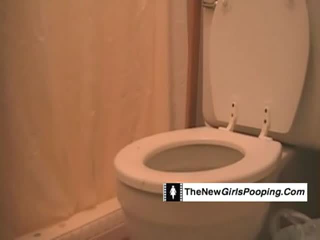 Amateur girl sits on her knees while she's shitting a big one on bathroom floor.
