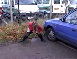 Hot girl caught peeing in a parking lot by a guy with a hidden camera.