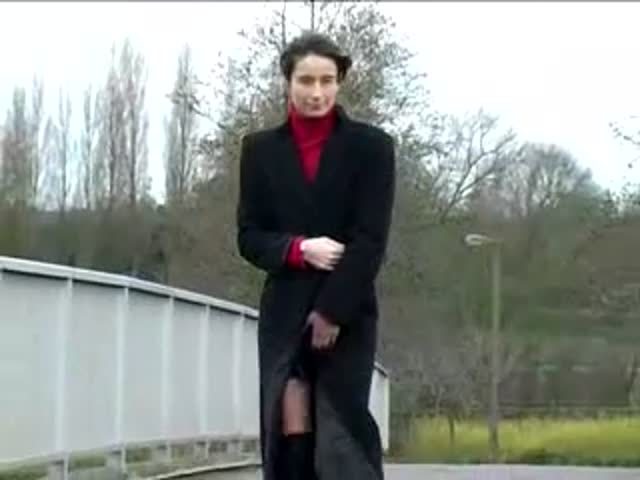 Dark haired girl peeing in public