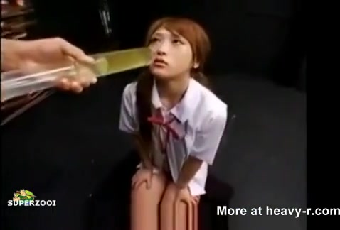Asian school girl was forced by her kinky boyfriend to drink warm piss.