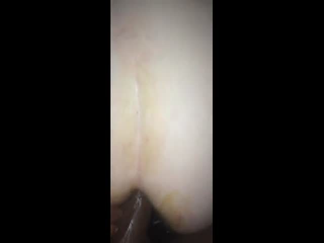 Interracial couple having fun in bedroom. A black guy is fucking a chubby white girl in the ass while she's pooping.