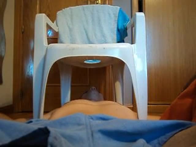 Fat girl sits naked on a homemade toilet while she's shitting on her husbands face.