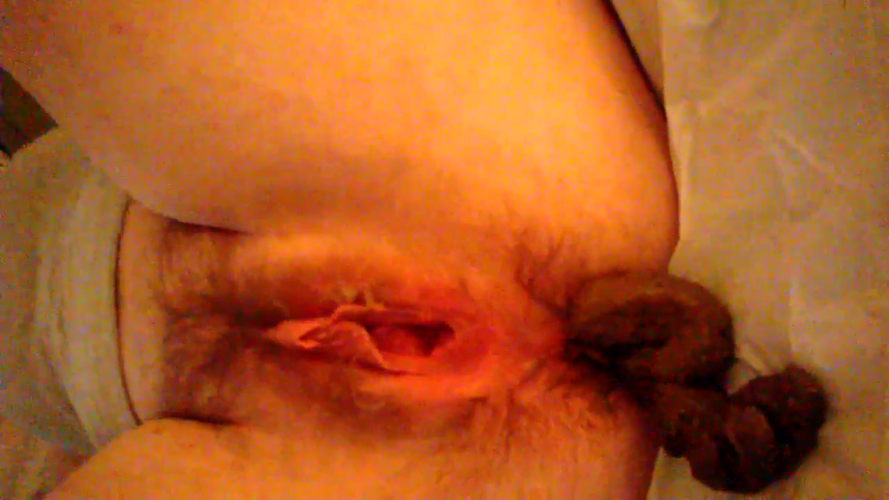 She records her creampied pussy in close up while she's pooping a pile of shit on bedroom floor.