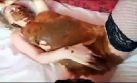 Blonde milf smears poop on her entire body. She starts masturabating with poop until she reached climax.