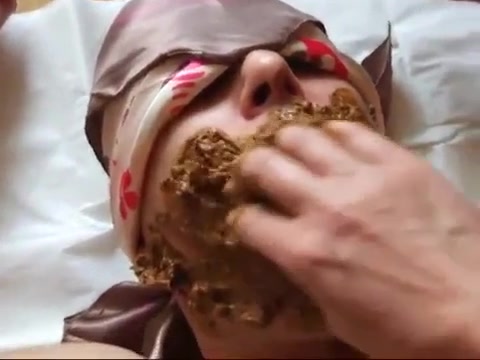 Blind folded slave eating shit being stuffed in his mouth while being blind folded