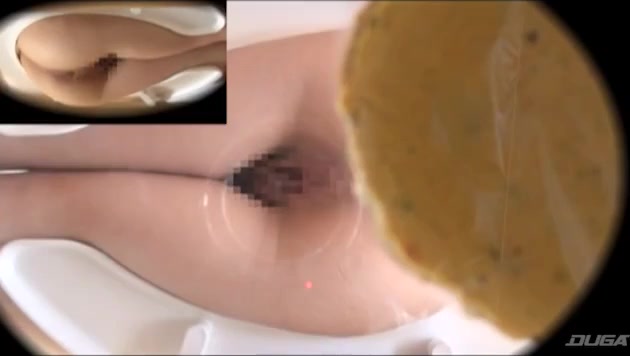 Cute school girl sits half naked on toilet as she's pooping a lot.