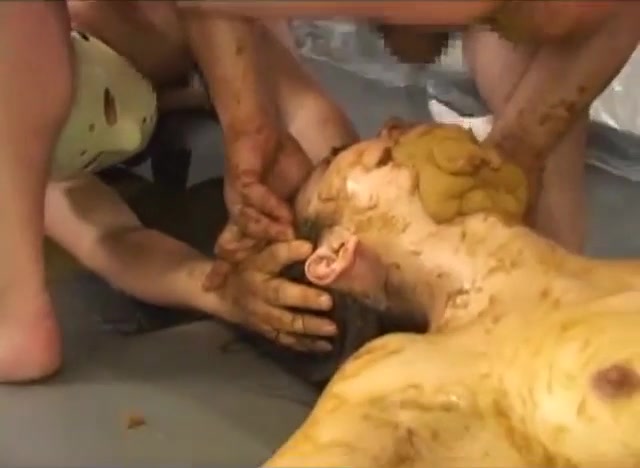 She was forced to smear shit on her entire body. Two guys start fucking her hard with poop on their dicks.