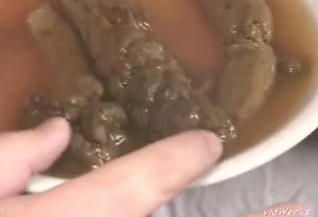 Brown haired Japanese girl was forced to eat fresh shit from a white plate.