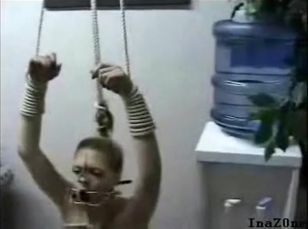 She was bondaged so she can't move while her boyfriend is peeing in her opened mouth.