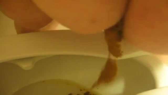 BBw babe slaps her big ass while she's pooping a big one in toilet.