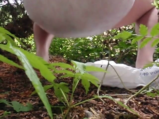 This guy is using a hidden camera to spy on a sexy babe that's peeing in a forest.