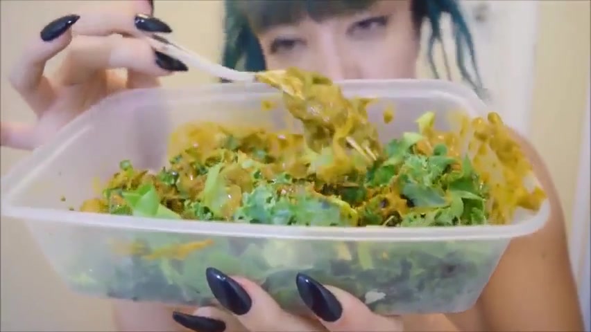 Alternative girl eating scat salad