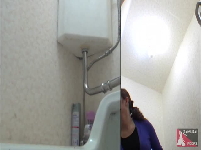 Brown haired Japanese teen caught pooping in a public bathroom. A hidden camera is installed there.