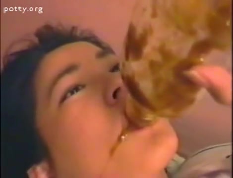 Dark haired Japanese girl proves once again taht she's a real shit eater. She sits on her knees while her boyfriend is shitting in her opened mouth.
