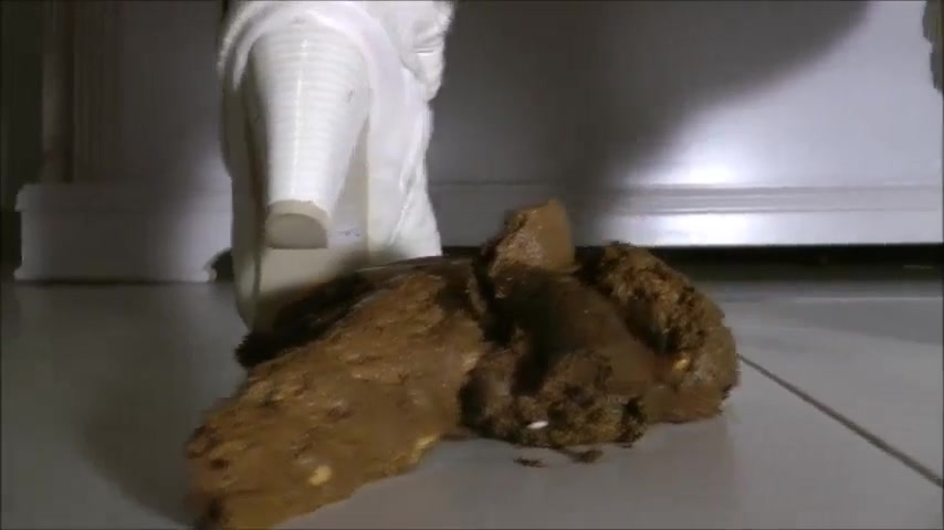 Amateur girl dropped a huge turd on bathroom floor between her legs.