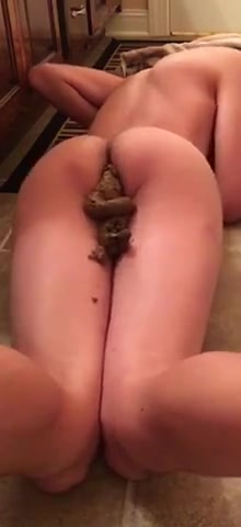 Amateur girl really had to go. She lays naked on her belly while pooping a lot.