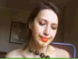 pretty girls eating her own shit from the dildo with some good music
