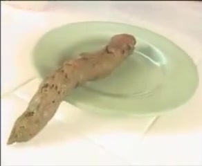 Brunette teen smears poop on her naked body. She did that in the kitchen instead of cooking.