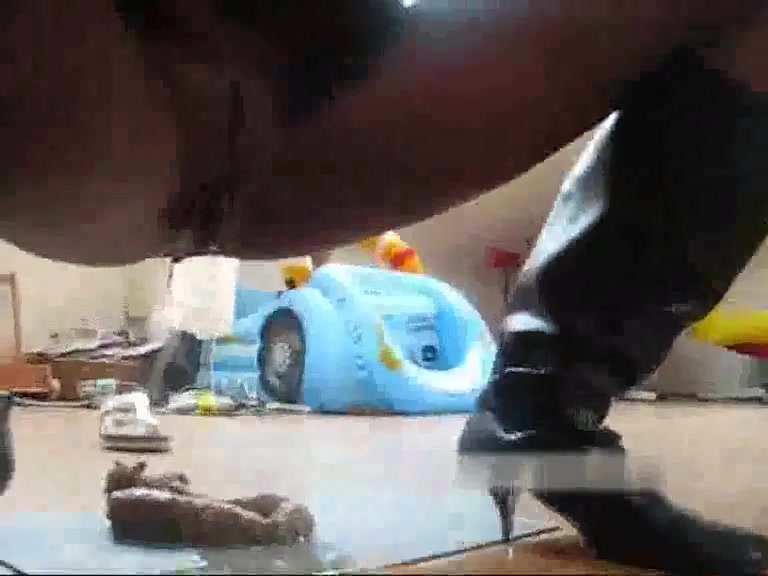 Beautiful black girl is pooping and peeing on bedroom floor. She's wearing a tight black dress.