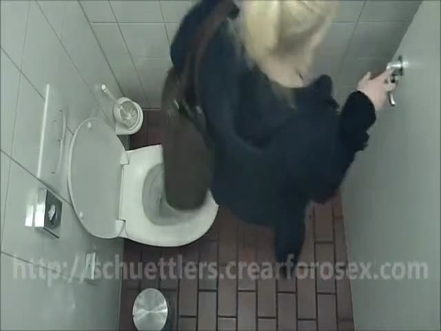 Blonde babe caught shitting in a public bathroom. She didn't wipe her dirty ass before leaving.